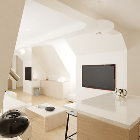 Un appartement sous les toits et dans son jus à repenser entièrement pour en faire un cocon lumineux et élégant.